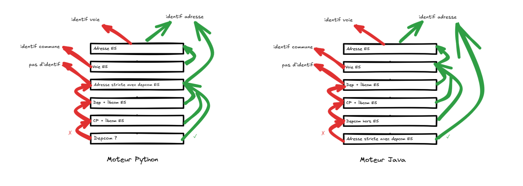 Pour chaque nom de voie du référentiel, compter le nombre de mots qui sont retrouvés dans l’adresse recherchée : les matchs 🎯.