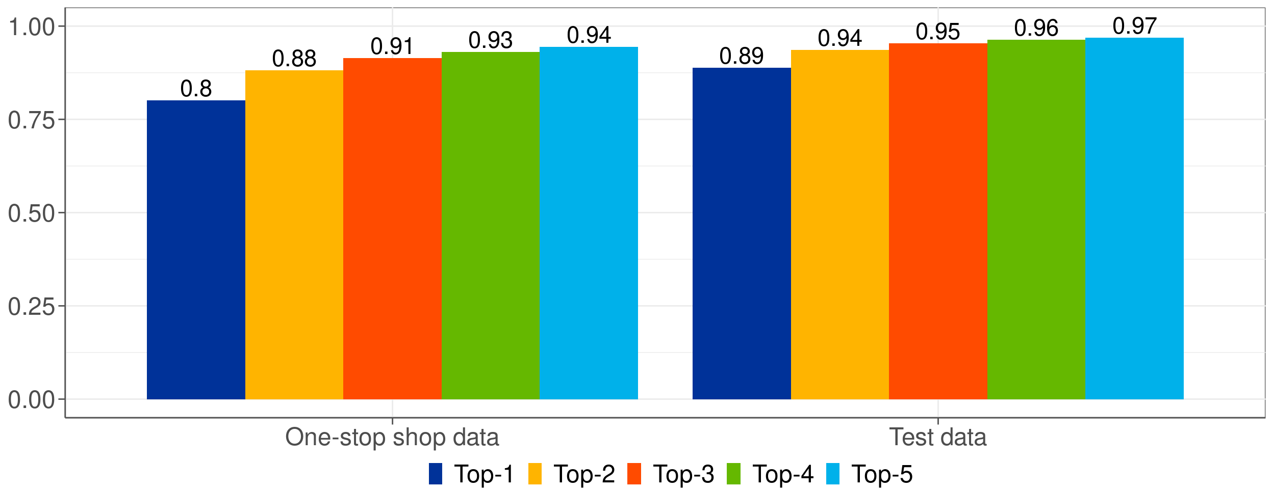 Figure 2: Top-\(k\) accuracy pour chaque jeu de données.