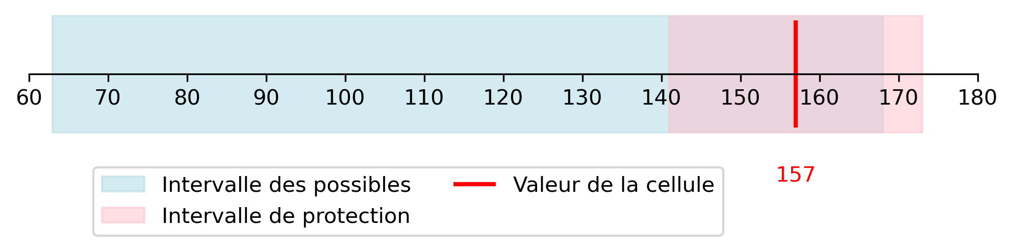 La borne supérieure de l’intervalle des possibles (168) est inférieure à la borne supérieure de l’intervalle de protection (173).