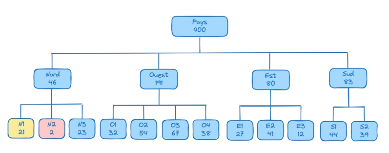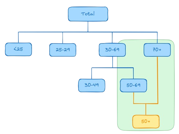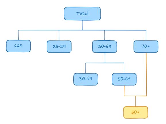 Ici, l’agrégat 50+ ne peut pas être bien emboîté dans la hiérarchie.