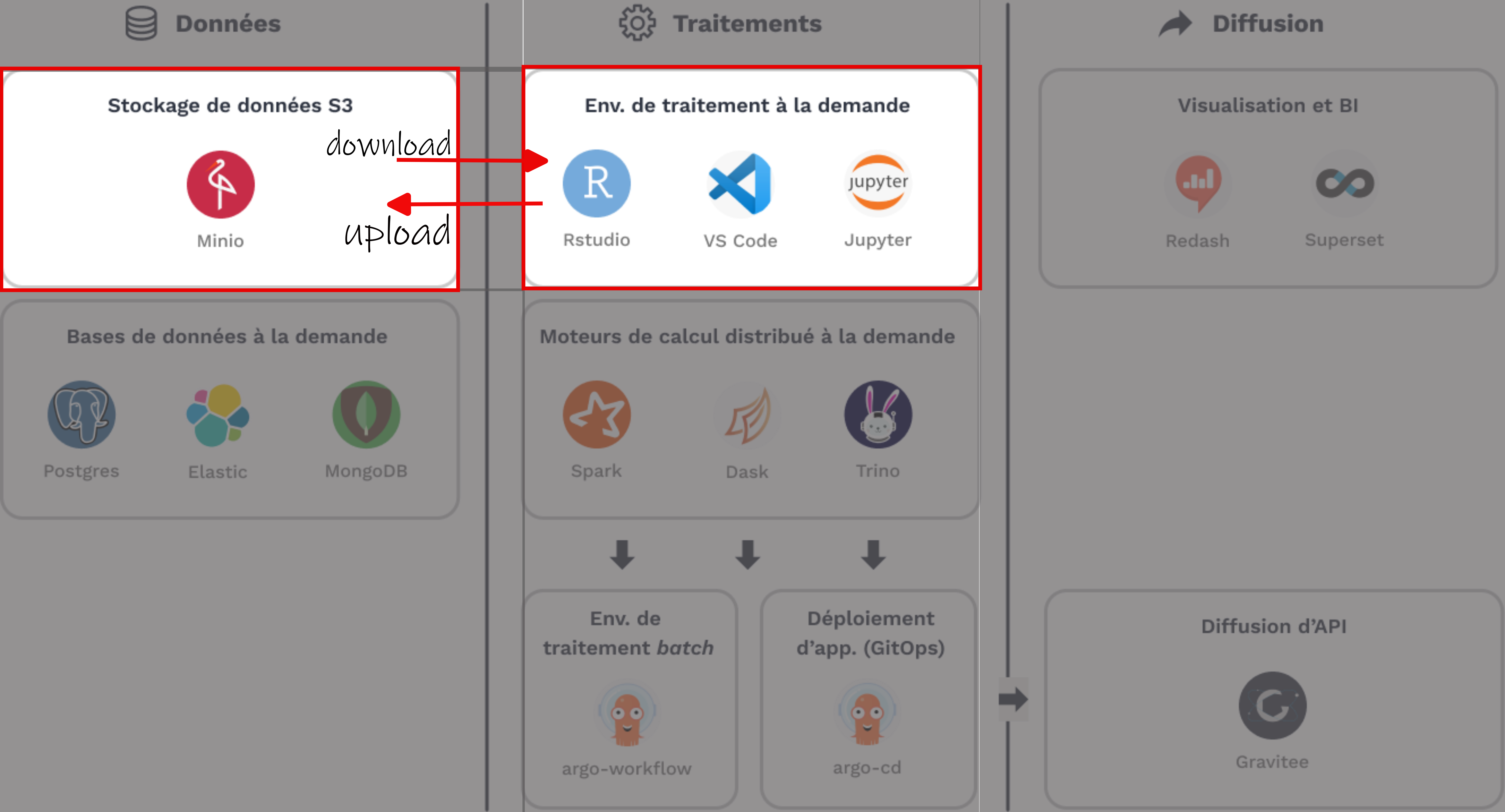 GitHub, GitLab…)MinIOhttps://docs.sspcloud.fr/onyxia-guide/stockage-de-donnees