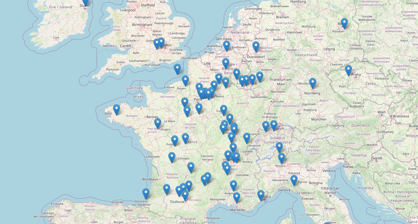 On souhaite implémenter une première application de visualisation simple, affichant une carte sur laquelle se déplacent en temps réel des points correspondant aux vols Air France en Europe. Un squelette d’application se trouve dans le répertoire intermediate_app, avec des éléments à compléter.