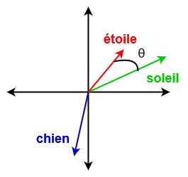 Une manière de procéder est de calculer la similarité cosinus entre les vecteurs de plongement des deux mots. Plus précisément, la similarité entre deux mots de représentations vectorielles \(u\) et \(v\) est définie comme le cosinus de leur angle \( \) : \[cos(\theta) = \frac{u \cdot v}{\lVert u\rVert \lVert v\rVert}\]