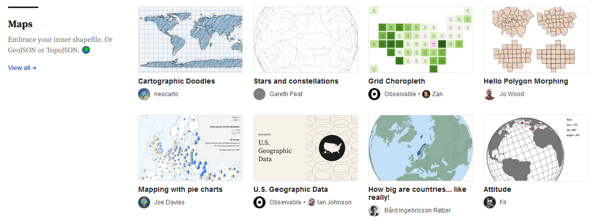 observable est une plateforme de dataviz réactive qui propose des notebooks communautaires de visualisations de données:
